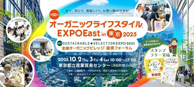 2025年10月2日(木)~4日(土)、東京都立産業貿易センター浜松町館で開催される「第10回オーガニックライフスタイルEXPO East in 東京 2025」に当社が出展いたします。