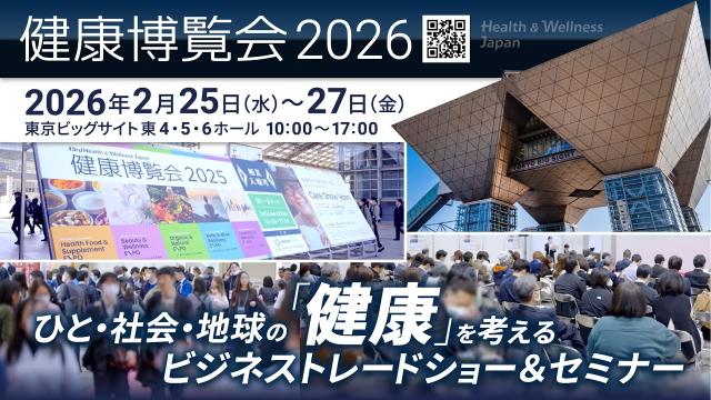 2026年2月25日(水)より東京ビッグサイトにて開催される「健康博覧会2026」に出展いたします。